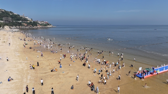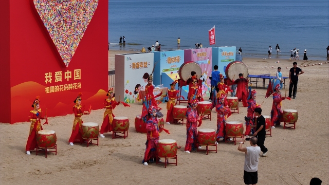 10月1日上午,以山海為背景以快樂為主題,一場國慶海洋奇遇在連島景區大沙灣舉行。活動現場氛圍熱烈,人們沉浸其中共同為祖國母親慶生。