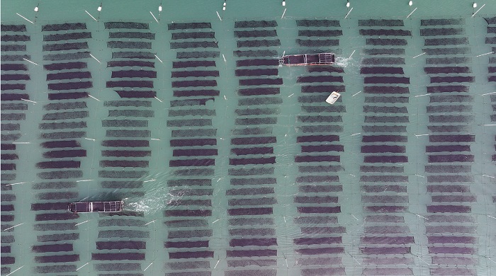 連日來,贛榆區沿海養殖的3萬多畝壇紫菜陸續進入頭茬收割期,養殖戶及時組織采收和轉運,“海洋牧場”一派忙碌景象。