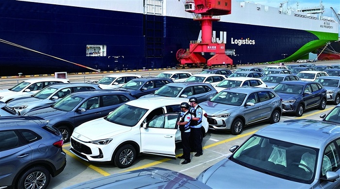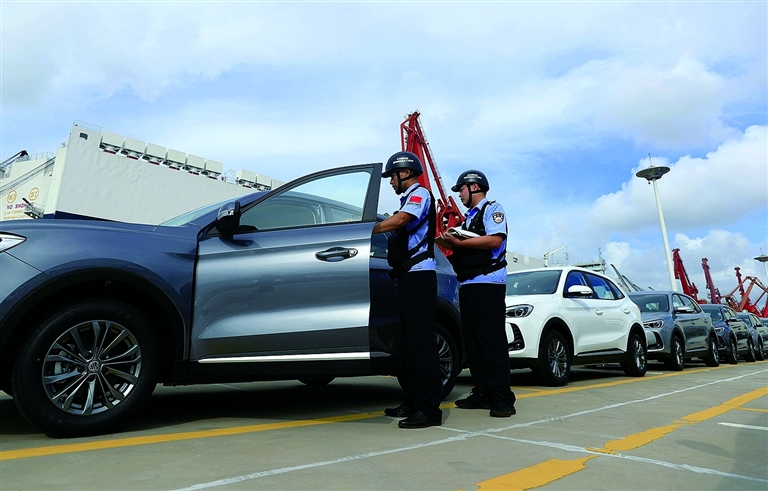 9月5日,裝載4164輛國產汽車的“安吉鼎盛”輪緩緩駛離連云港口岸,前往沙特、約旦等國家。連云港出入境邊防檢查站制定“一船一策”專項勤務方案,縮短船舶候檢時間,助力“中國制造”走出國門。今年1至8月份,連云港口岸新能源汽車出口量突破3.45萬輛,同比增長78.76%,創歷史新高。