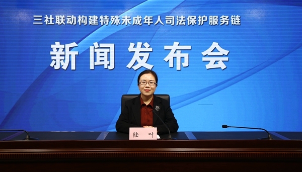 陸葉:各位來賓、記者朋友們,大家上午好!歡迎參加三社聯動構建特殊未成年人司法保護服務鏈新聞發布會。